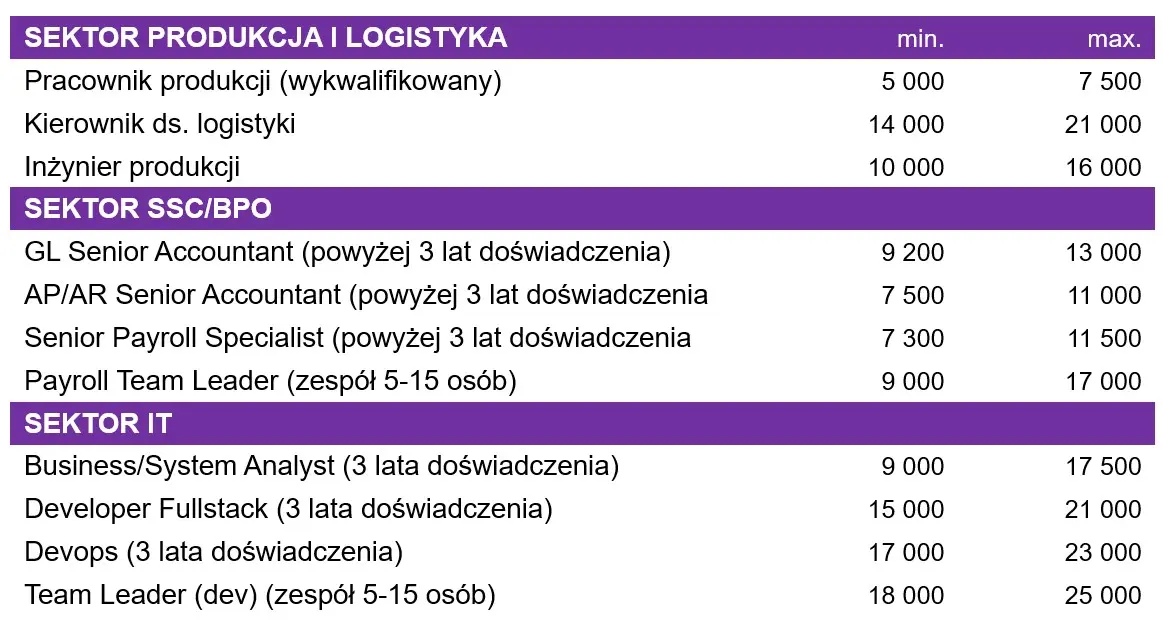 Przykładowe miesięczne wynagrodzenia brutto w Łodzi: