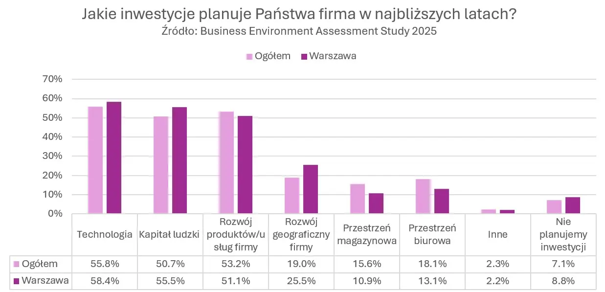 większą dynamiką – inwestycje technologiczne planuje 58% firm, a w rozwój