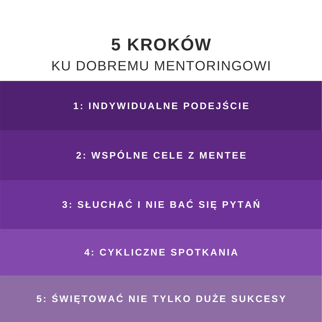 Ostatecznie bycie mentorem wymaga praktyki i cierpliwości. Im dłużej pracujemy z danym podopiecznym, tym więcej dowiadujemy się o nim samym: o jego stylu komunikacji, o tym jak realizuje swoje cele. Jednocześnie lepiej poznajemy też samych siebie: czy w jasny sposób dzielimy się doświadczeniem, czy potrafimy kontrolować swoje emocje, czy w odpowiedni sposób motywujemy mentee do działania. W końcu bycie mentorem może przynieść korzyści zarówno mentorom jak i podopiecznym. To o czym warto pamiętać to, aby podejść do każdego procesu indywidualnie. Wspólnie z mentee należy ustawić oczekiwania, cele, potrzeby i zasady współpracy. Słuchać uważnie drugiej strony, pytać i doradzać. To co ważne to również ustalenie cyklicznych spotkań oraz świętowanie wspólnych sukcesów, małych i dużych - dodaje Martyna Grunt-Mejer.