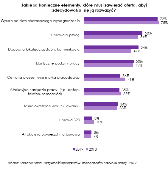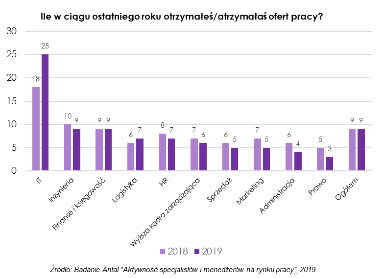 - Przeciętnie specjaliści i menedżerowie otrzymują rocznie dziewięć ofert pracy.